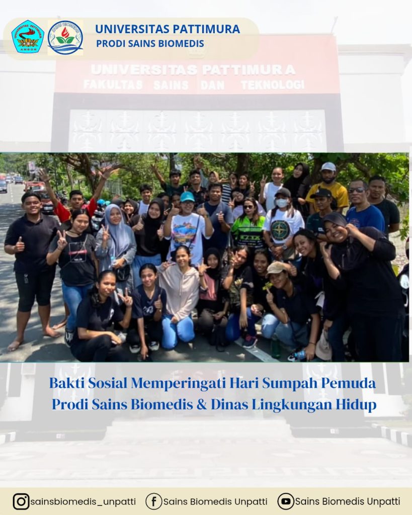 Dalam rangka memperingati Hari Sumpah Pemuda, Program Studi Sains Biomedis melaksanakan kegiatan bakti sosial bekerja sama dengan Dinas Lingkungan Hidup. Kegiatan ini merupakan wujud kepedulian terhadap kebersihan dan kelestarian lingkungan, sekaligus bentuk implementasi nilai-nilai Sumpah Pemuda dalam aksi nyata di tengah masyarakat.