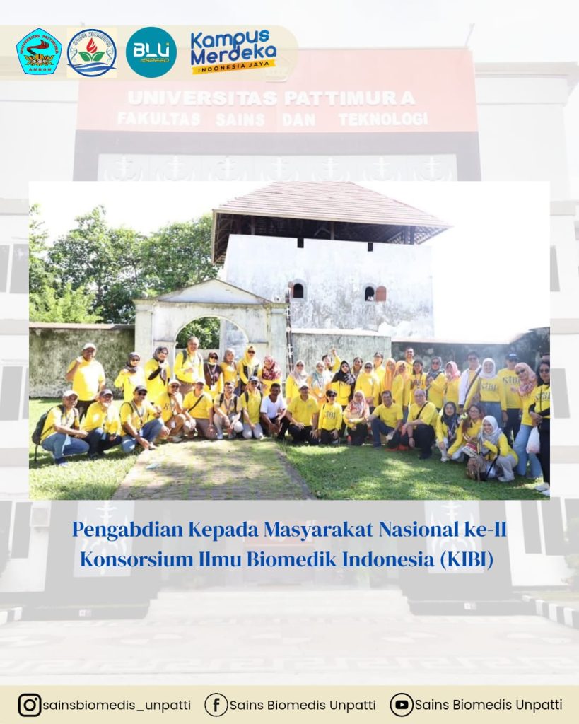 Kamis, 30 Mei 2024 – Konsorsium Ilmu Biomedik Indonesia (KIBI) bekerja sama dengan Program Studi S1 Sains Biomedis FMIPA Universitas Pattimura menyelenggarakan kegiatan Pengabdian kepada Masyarakat (Pengmas) Nasional Ke-II sebagai bentuk komitmen nyata dalam mengimplementasikan Tri Dharma Perguruan Tinggi, khususnya dalam bidang pengabdian kepada masyarakat.